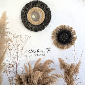 Décoration murale en raphia, composée de 7 pièces modulables à disposer selon vos envies. Apportez une touche bohème chic et élégante à votre