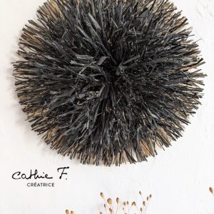 L'élégance intemporelle du juju hat nuancé de raphia noir et naturel aspect vieilli, confectionné avec soin, pour magnifier votre univers
