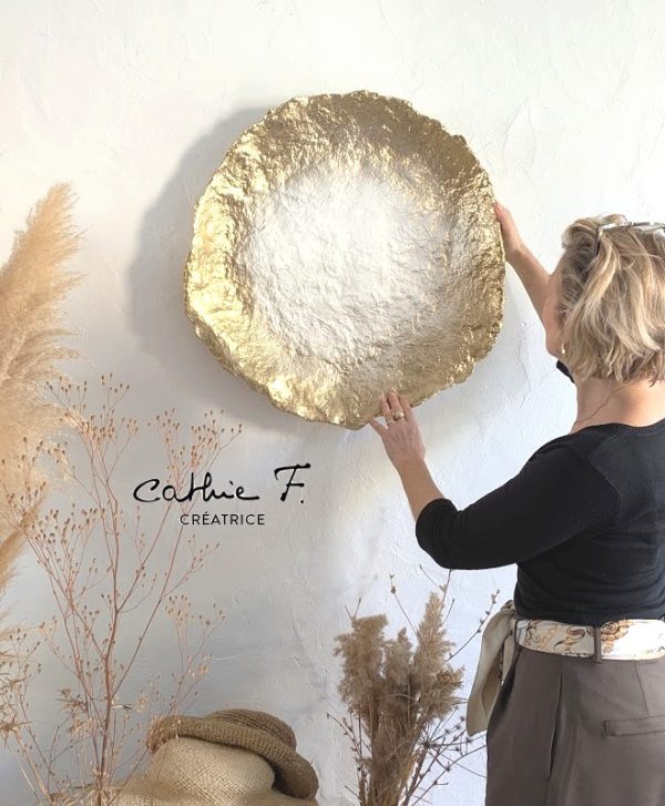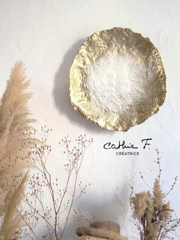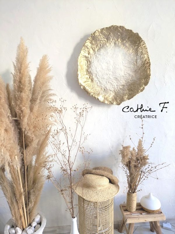 Illuminez votre intérieur grâce à cette décoration murale façonnée à la main dans mon atelier, une pièce captivante qui insuffle un glamour bohème et crée une ambiance enchanteresse et lumineuse. Sa couleur dorée ne vous laissera pas insensible.