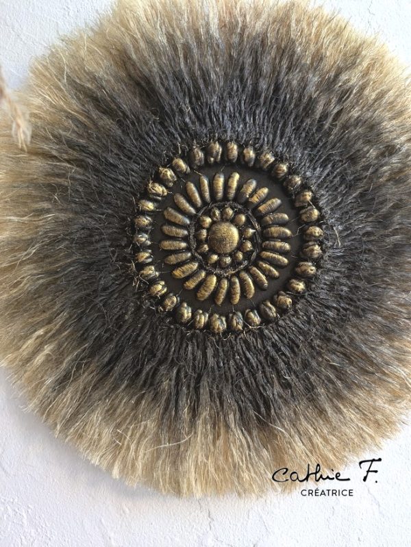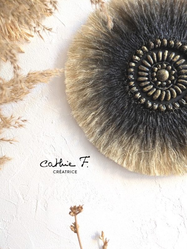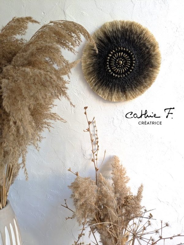 Son dégradé noir profond illuminé de reflets dorés crée un contraste élégant et moderne, parfait pour sublimer un mur dans un salon, une chambre ou un espace de méditation. Légère et facile à suspendre, cette pièce unique apporte une atmosphère chaleureuse, authentique et résolument bohème.