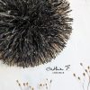 Décoration murale en raphia bombé vieilli sur ossature en carton compressé peint.