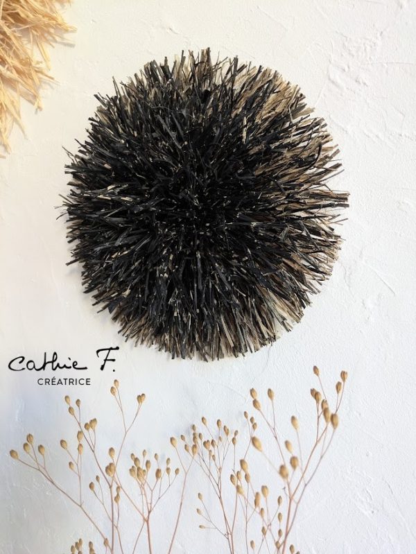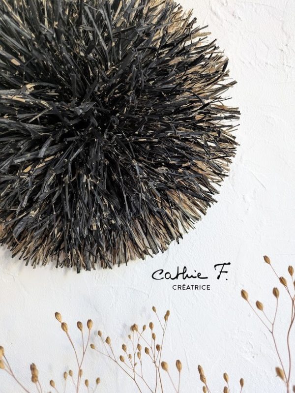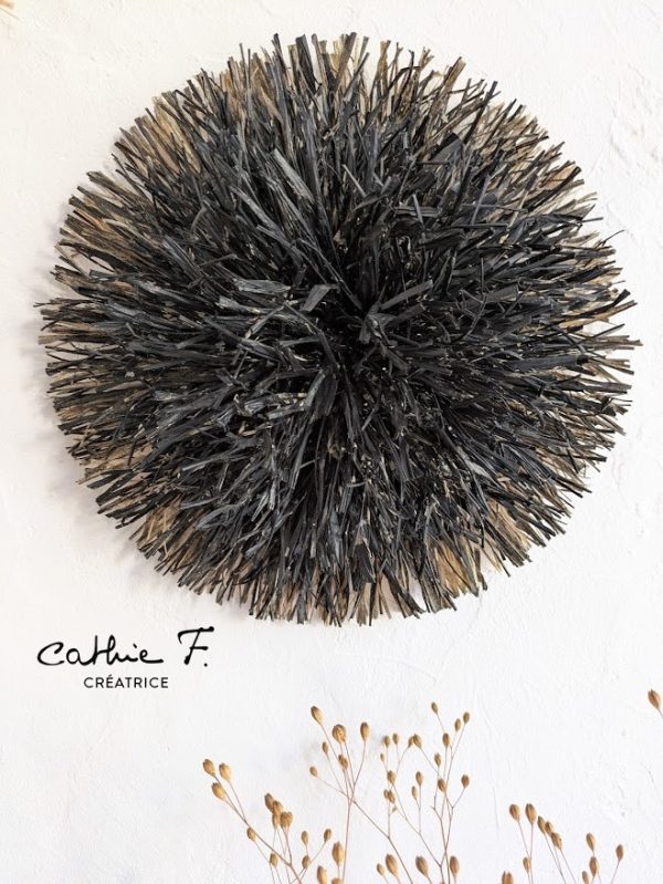 L’élégance intemporelle du juju hat nuancé de raphia noir et naturel aspect vieilli, confectionné avec soin, pour magnifier votre univers bohème.