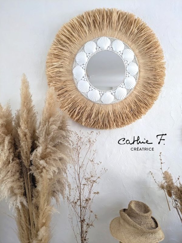 Miroir bohème chic raphia coquilles blanc IMPOSY