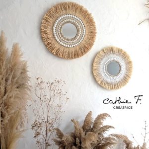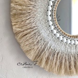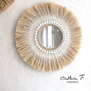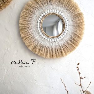 Ce miroir rond en corde et raphia capture l’essence d’un univers bohème chic oriental.