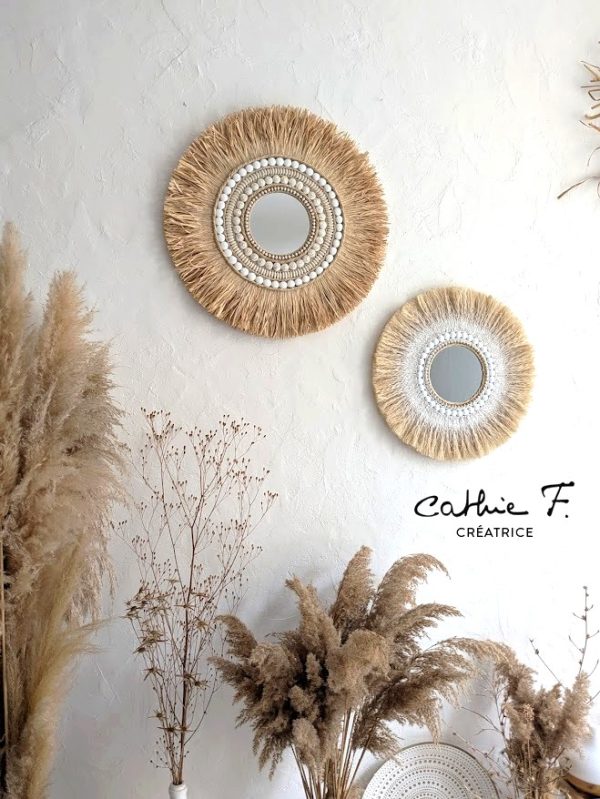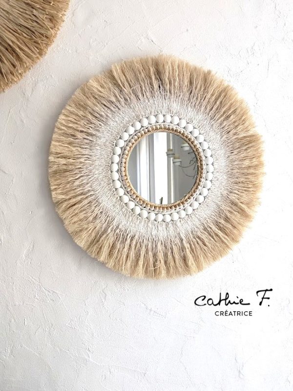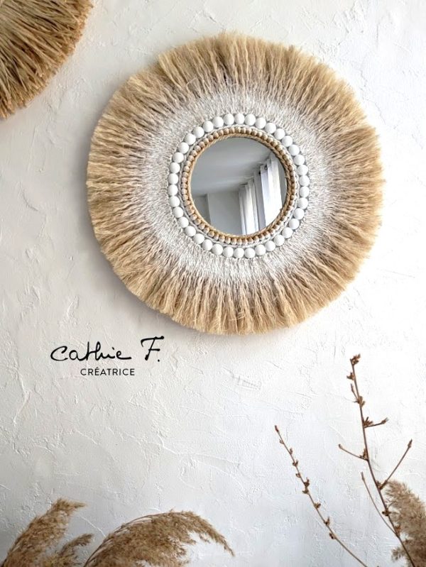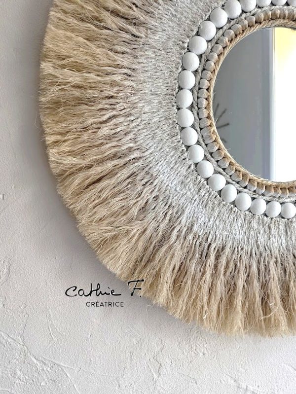 Fabriqué à la main dans mon atelier en utilisant des fibres naturelles, ce miroir avec un miroir orné de corde est non seulement un objet de décoration esthétique, mais aussi un hommage à l’artisanat traditionnel.