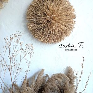 Accroché au mur, ce miroir en raphia apporte une subtile touche artisanale à tout espace, invitant à contempler son reflet avec calme et simplicité.
