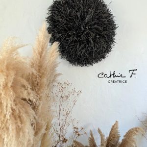 Décoré en raphia et plumes en macramé noir, cette création captivante évoque une ambiance sophistiquée et envoûtante, parfaitement adaptée pour rehausser le charme de votre
