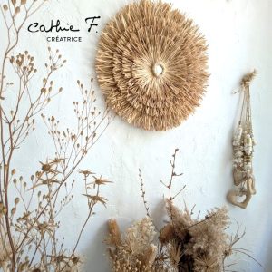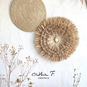 Le juju hat en raphia est une pièce de décoration murale naturelle disponible dans différents diamètres.