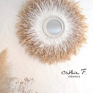Les miroirs en corde, raphia et décorations naturelles pour intérieurs bohèmes sont des pièces décoratives qui incarnent l’esthétique bohème et naturelle. Ces miroirs présentent un travail de corde ou de raphia tissé à la main, souvent agrémenté de décorations naturelles telles que des graines, des plumes ou du verre. Leur style artisanal et organique apporte une touche de caractère et de chaleur à tout espace bohème. Accrochés au mur, ces miroirs ajoutent une dimension visuelle intéressante tout en reflétant l’ambiance décontractée et inspirante de la décoration bohème.